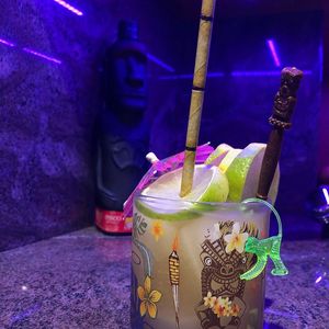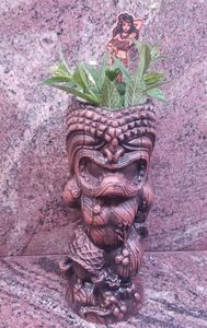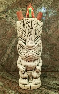 Combine ingredients into shaker with crushed ice. Shake it and pour contents into tiki mug. Top with more crushed ice. Garnish with cinnamon sticks.