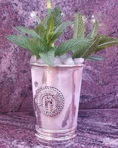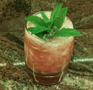 Add all ingredients to shaker and muddle. Add ice and shake. Strain into Old Fashioned glass filled with cracked ice. Garnish with a mint sprig.