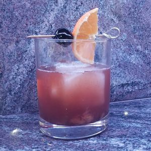 Garnish with Orange twist and Luxardo cherry.